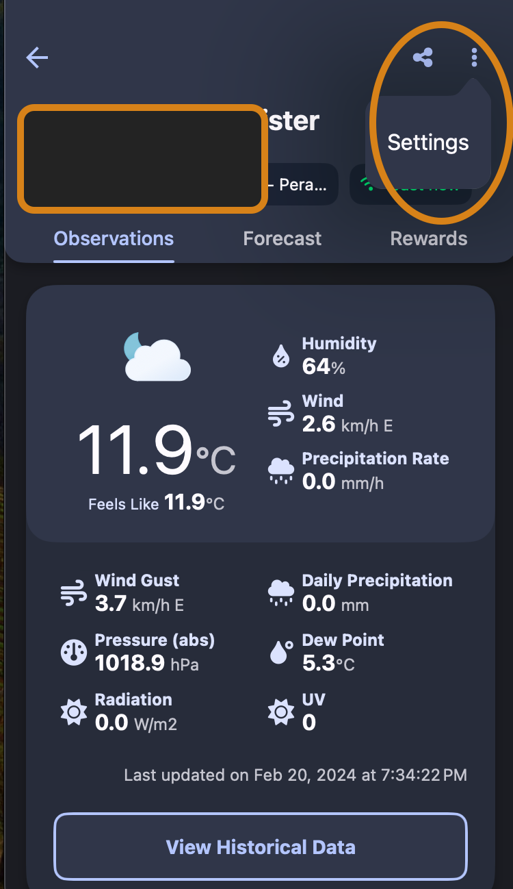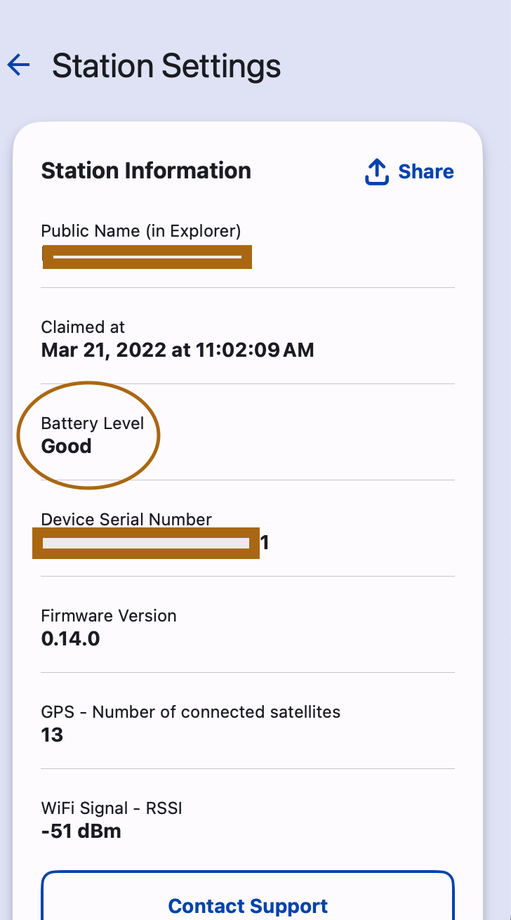 - Check if the station's battery level is low through mobile app settings. If the battery is low, the connection between your station and the WG1000 gateway will be unstable resulting in data loss.